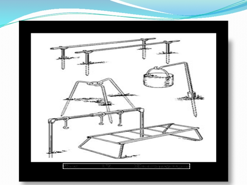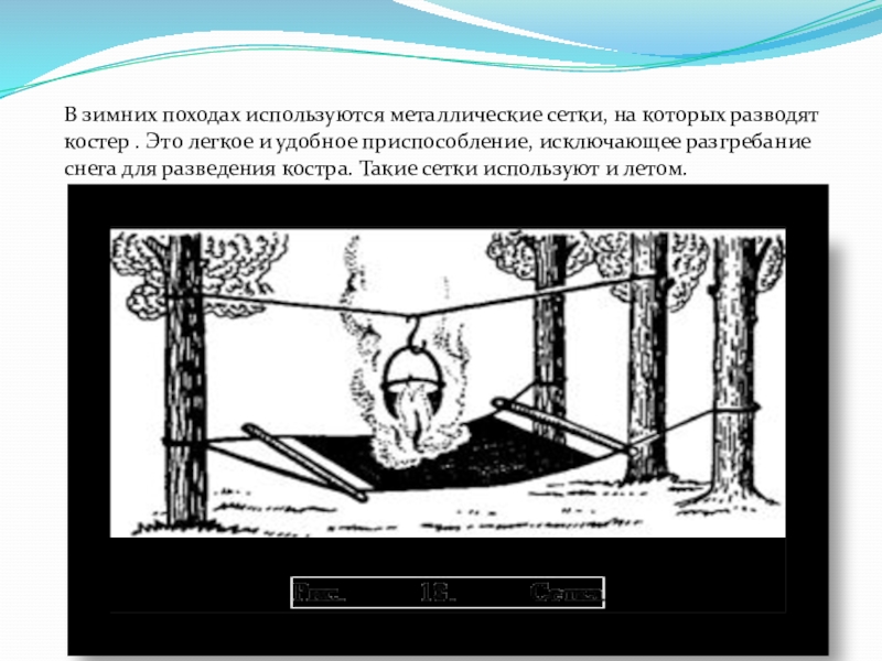 Слайд 32В зимних походах используются металлические сетки, на которых разводят костер .
