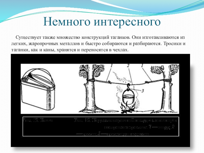 металлов и быстро собираются и разбираются. Тросики и таганки, как и каны, хранятся и переносятся в чехлах.