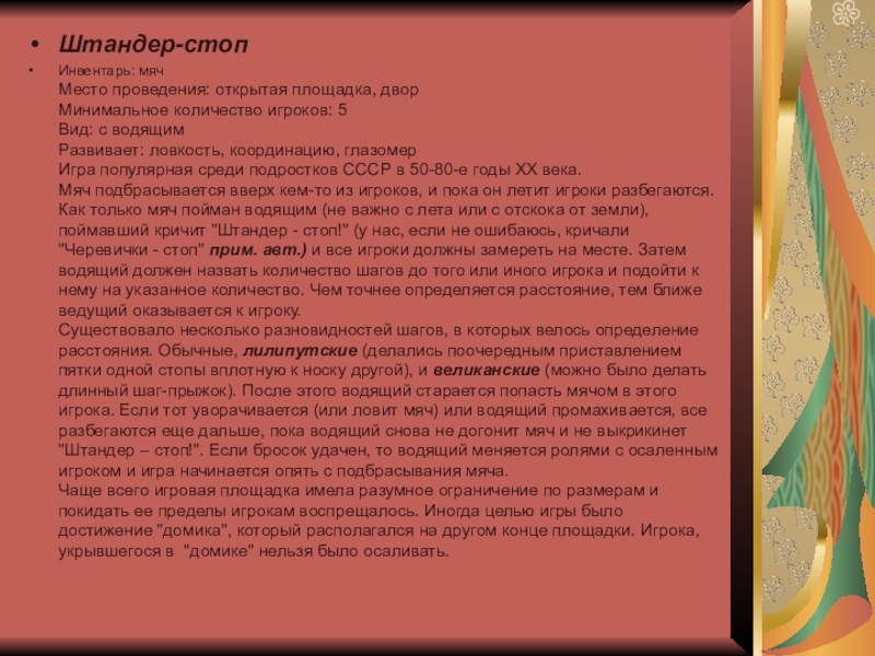 Правила некоторых игр будут даны в статье с пометкой "авторская". Возможно, в такие игры играл и еще кто-то, но наша дворовая компания считала их "эксклюзивными", придуманными самостоятельно.