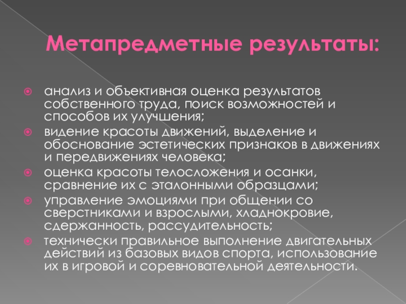 Метапредметные результаты: анализ и объективная оценка результатов собственного труда, поиск возможностей и способов их улучшения;видение красоты