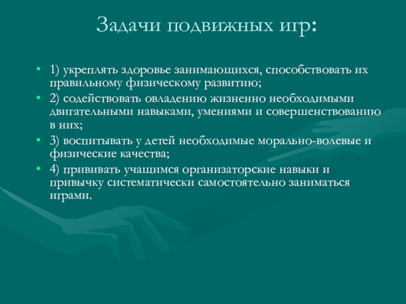 Основная часть состоит из игр. Содержание основной части должно быть разнообразным: подвижные игры, игры-эстафеты, спортивные упражнения, элементы спортивных игр, самостоятельные игры детей.