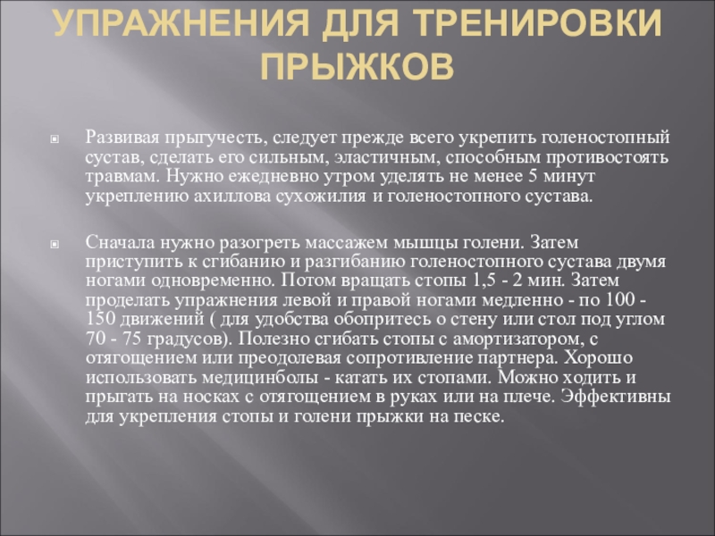 Развивая прыгучесть, следует прежде всего укрепить голеностопный сустав,
