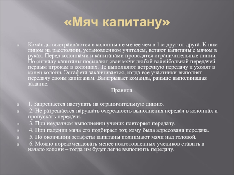 Слайд 6«Мяч капитану»