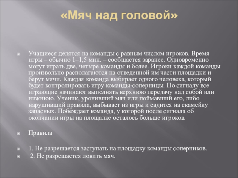 Слайд 11«Мяч над головой»