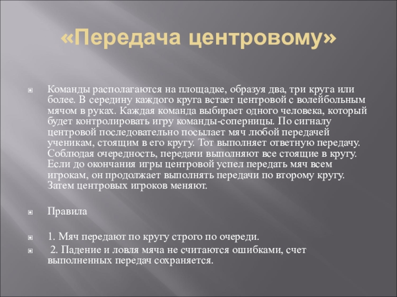 Слайд 12«Передача центровому»