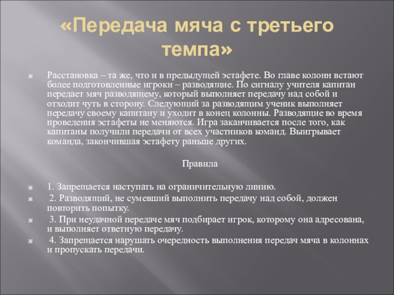 Слайд 7«Передача мяча с третьего темпа»