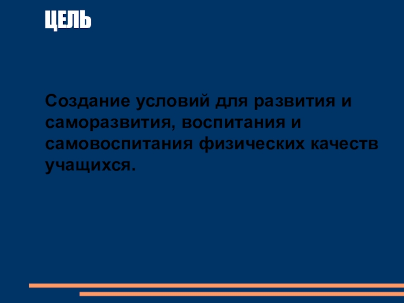 ЦЕЛЬСоздание условий для развития и саморазвития, воспитания и самовоспитания физических качеств учащихся.