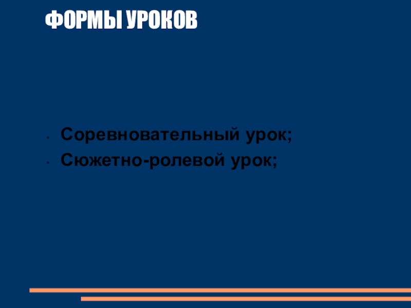 ФОРМЫ УРОКОВСоревновательный урок;Сюжетно-ролевой урок;