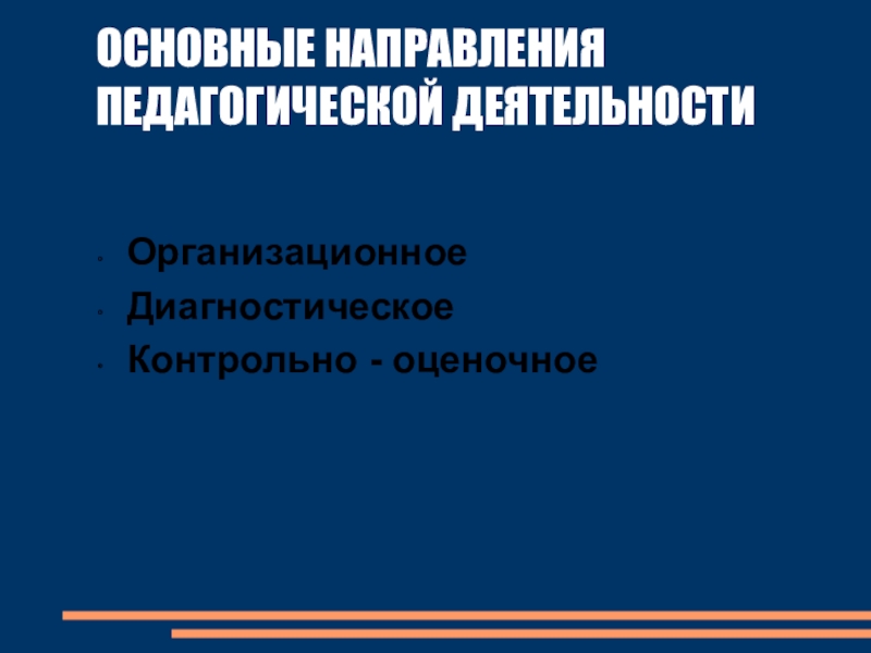 ОСНОВНЫЕ НАПРАВЛЕНИЯ ПЕДАГОГИЧЕСКОЙ ДЕЯТЕЛЬНОСТИОрганизационноеДиагностическоеКонтрольно - оценочное