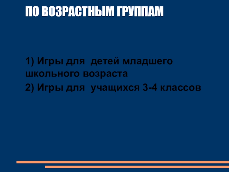 ПО ВОЗРАСТНЫМ ГРУППАМ1) Игры для детей младшего школьного возраста2) Игры для учащихся 3-4 классов