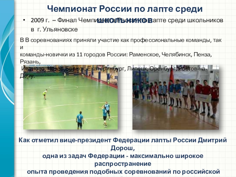 Как отметил вице-президент Федерации лапты России Дмитрий Дорош,