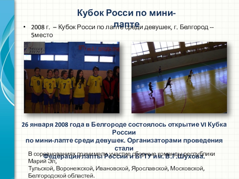 Федерация лапты России и БГТУ им. В.Г.Шухова.