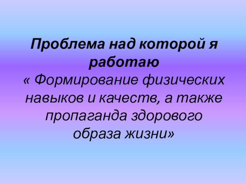 Проблема над которой я работаю « Формирование физических навыков и качеств, а также пропаганда