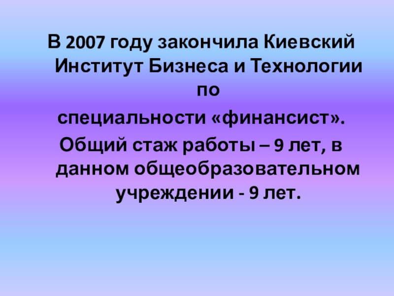 Слайд 3В 2007 году закончила Киевский Институт Бизнеса и Технологии по