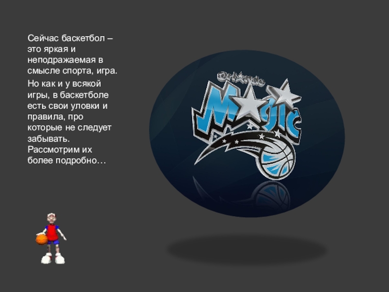 Слайд 5Сейчас баскетбол – это яркая и неподражаемая в смысле спорта, игра.