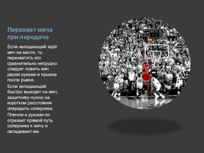 Слайд 19Перехват мяча при передаче
