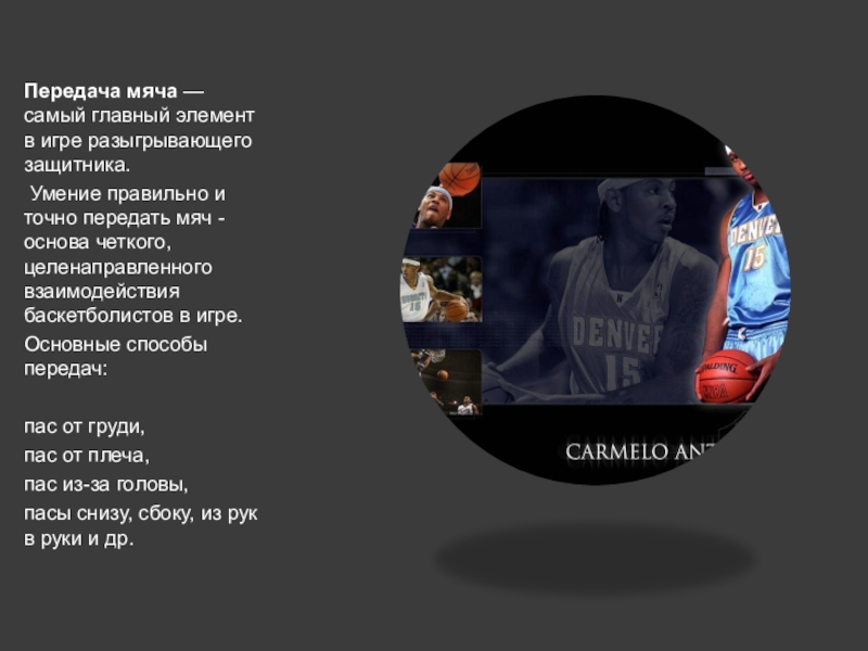 Слайд 16Передача мяча —самый главный элемент в игре разыгрывающего защитника.