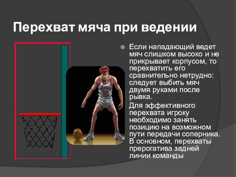 Слайд 20Перехват мяча при ведении