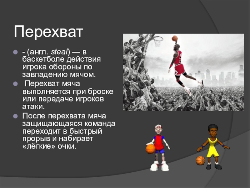 Слайд 17Подбор — важнейший элемент при игре в баскетбол, при котором игрок