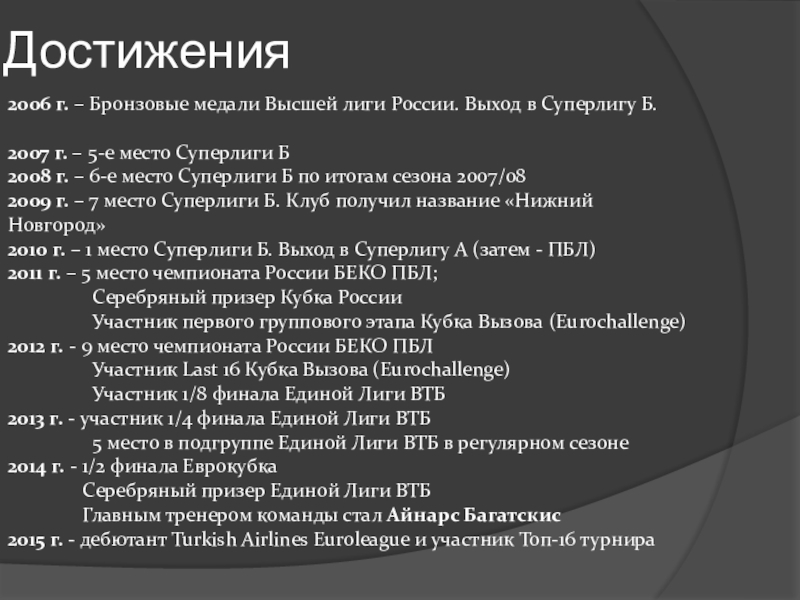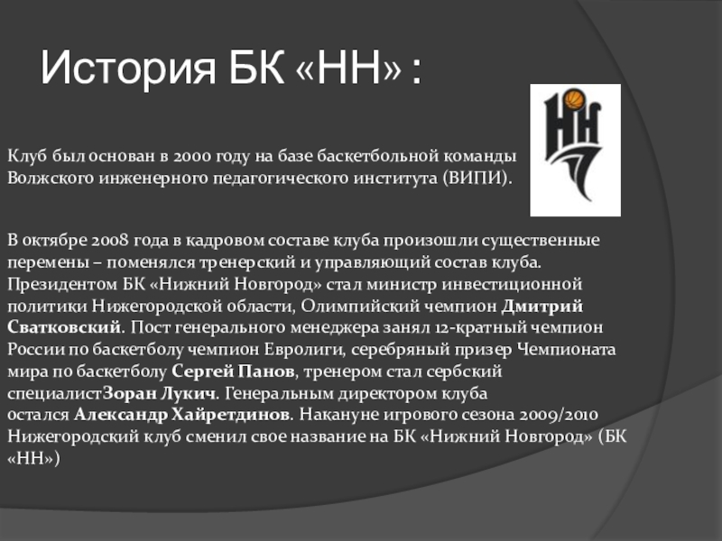 Слайд 32История БК «НН» :