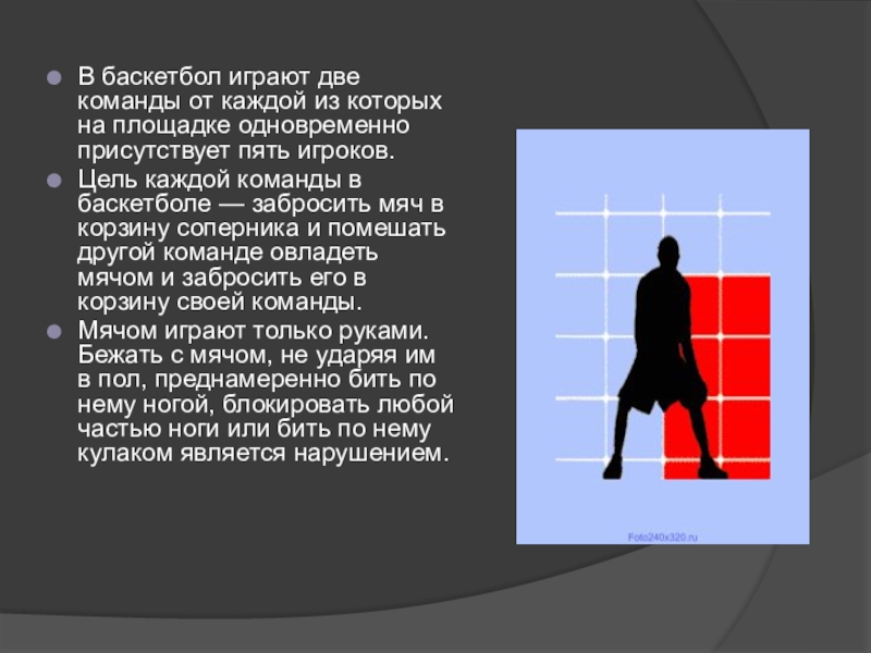 Слайд 8В баскетбол играют две команды от каждой из которых на площадке