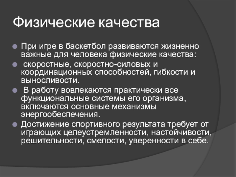 При игре в баскетбол развиваются жизненно важные для человека физические
