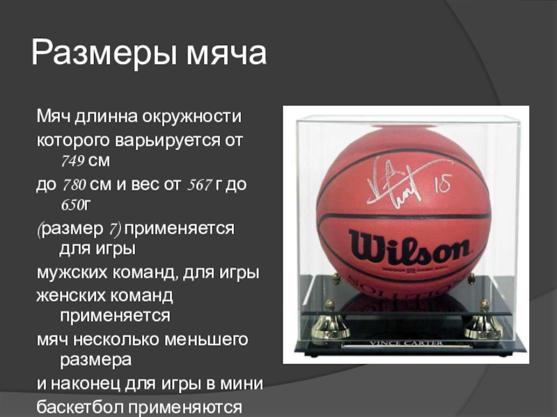 Слайд 25Размеры мяча