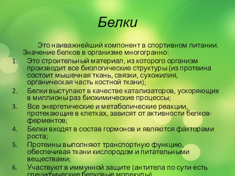 Это наиважнейший компонент в спортивном питании. Значение белков в организме многогранно:
