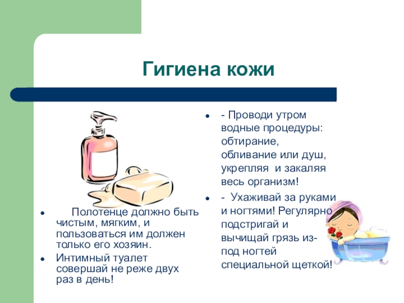 - Проводи утром водные процедуры: обтирание, обливание или душ, укрепляя и закаляя весь организм!