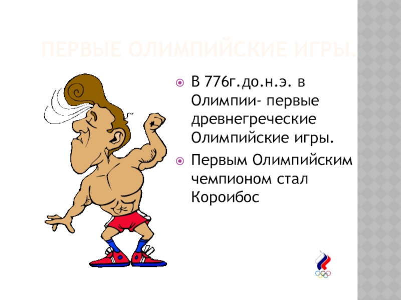 Слайд 3 ПЕРВЫЕ ОЛИМПИЙСКИЕ ИГРЫ.