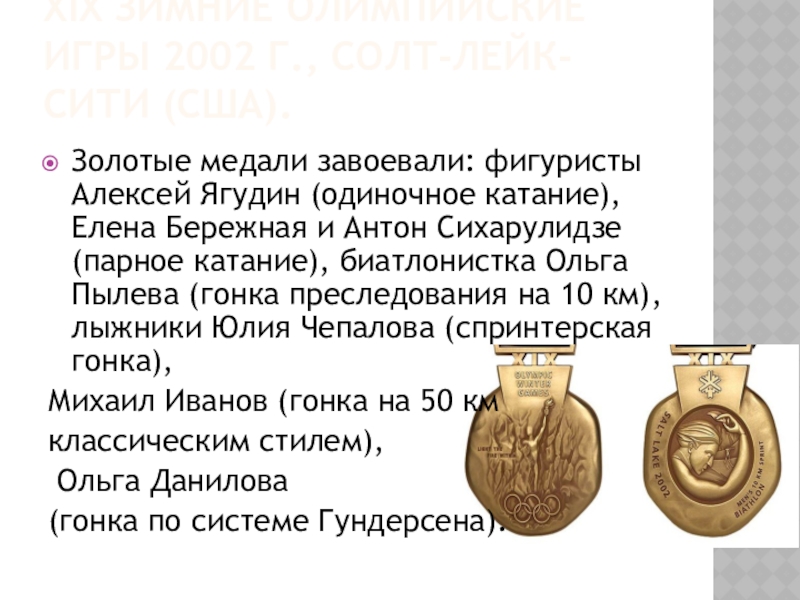 Слайд 21XIX ЗИМНИЕ ОЛИМПИЙСКИЕ ИГРЫ 2002 Г., СОЛТ-ЛЕЙК-СИТИ (США).