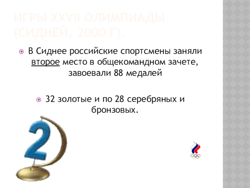 Слайд 15ИГРЫ XXVII ОЛИМПИАДЫ (СИДНЕЙ, 2000 Г).