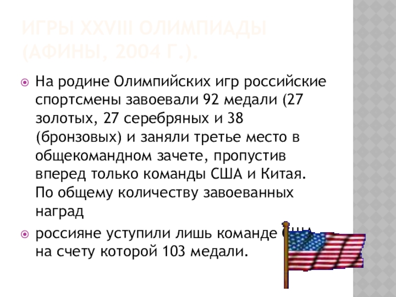 Слайд 17ИГРЫ XXVIII ОЛИМПИАДЫ (АФИНЫ, 2004 Г.).