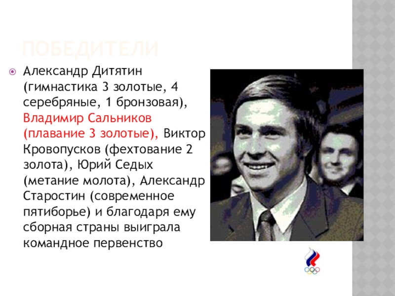 Александр Дитятин (гимнастика 3 золотые, 4 серебряные, 1 бронзовая), Владимир Сальников