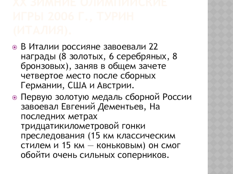 Слайд 23XX ЗИМНИЕ ОЛИМПИЙСКИЕ ИГРЫ 2006 Г., ТУРИН (ИТАЛИЯ).