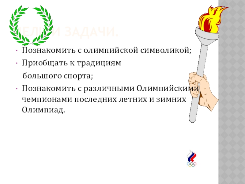 Познакомить с различными Олимпийскими чемпионами последних летних и зимних Олимпиад.