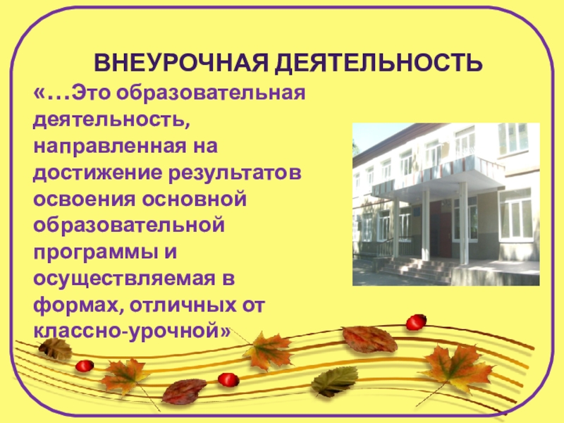 Слайд 1АКТУАЛЬНЫЕ ВОПРОСЫ ОРГАНИЗАЦИИ ВНЕУРОЧНОЙ ДЕЯТЕЛЬНОСТИ