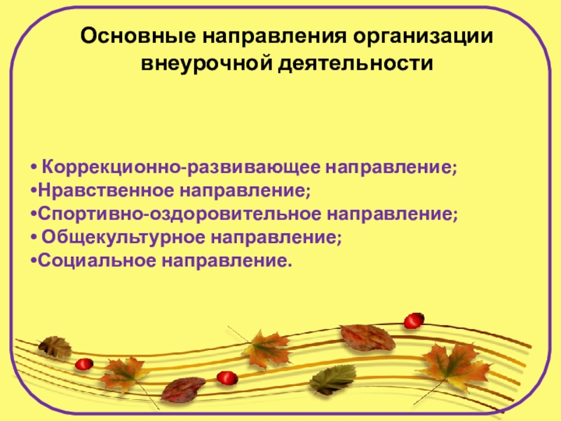 Слайд 10Основные направления организации