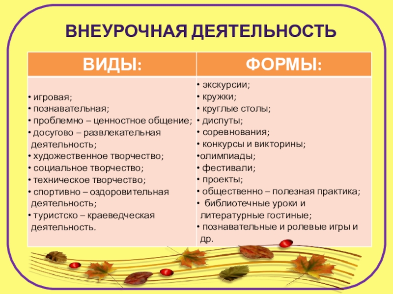 ВНЕУРОЧНОЙ ДЕЯТЕЛЬНОСТИ: