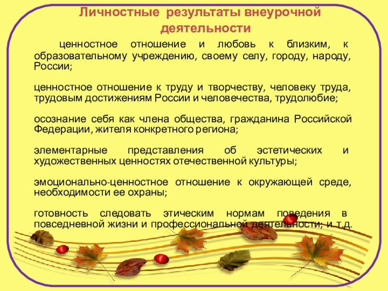 Слайд 19 Личностные результаты внеурочной деятельности
