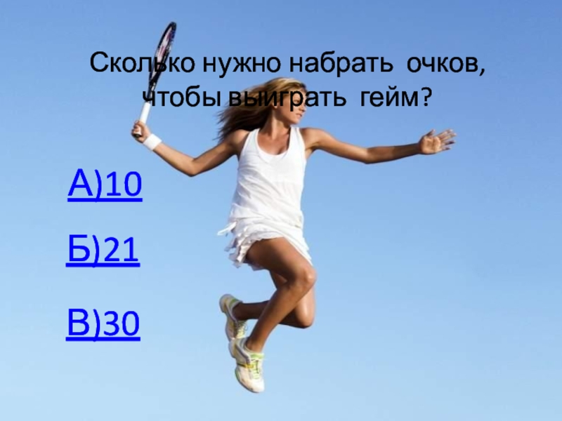 Сколько нужно набрать очков, чтобы выиграть гейм?А)10Б)21В)30