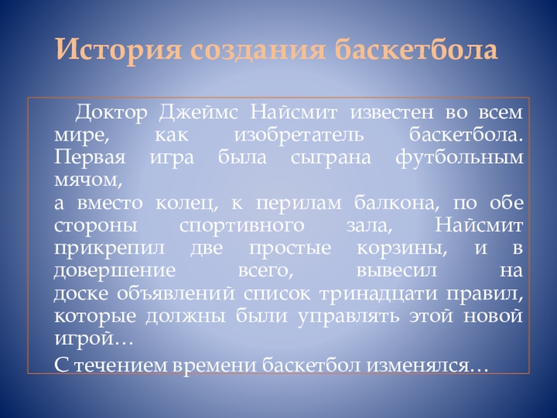 Баскетбол, начиная с Джеймса Найсмита, прошел длинный путь.
