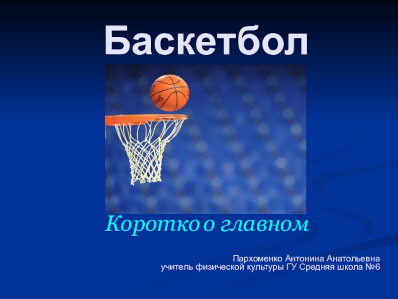 Баскетбол Коротко о главномПархоменко Антонина Анатольевнаучитель физической культуры ГУ Средняя школа №6