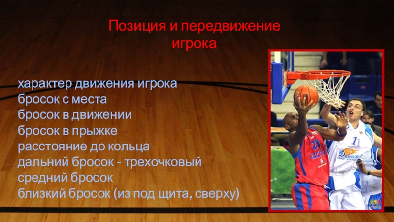 Слайд 6Правила игры в баскетбол ограничивают продвижение игрока с мячом. Следовательно, для