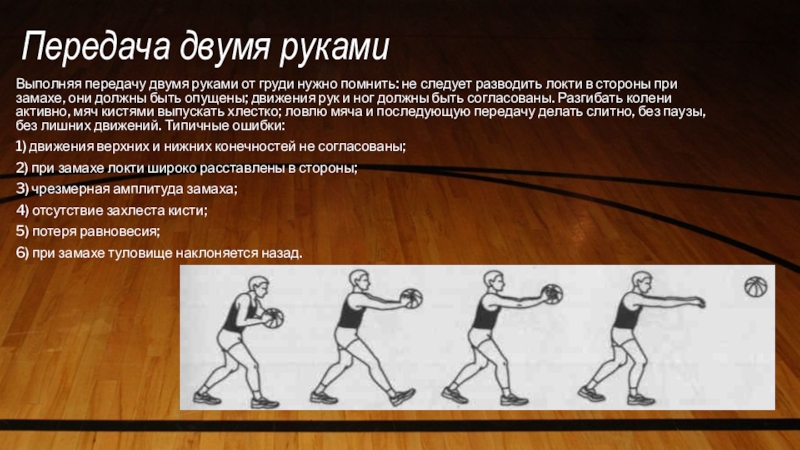 Выполняя передачу двумя руками от груди нужно помнить: не