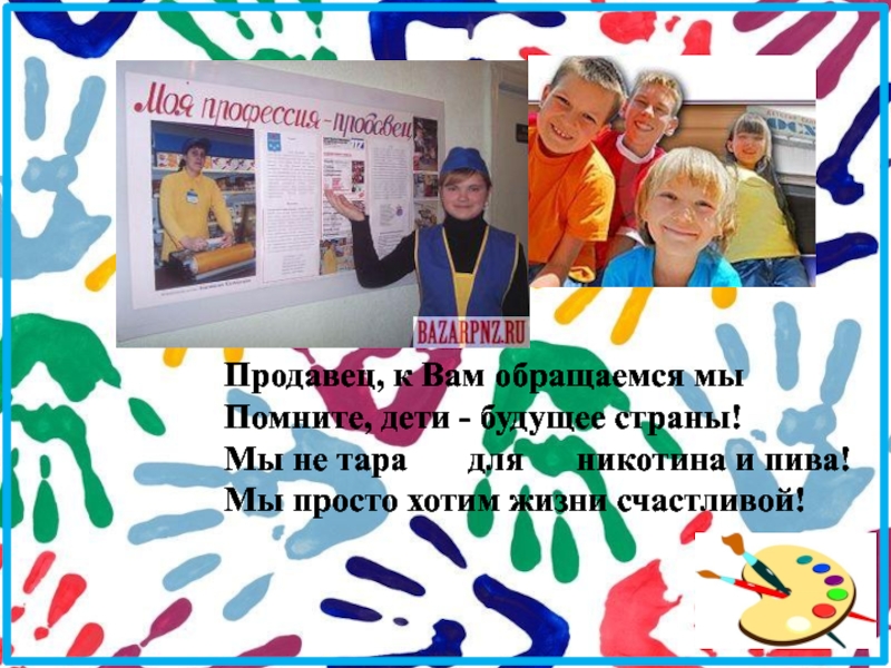Продавец, к Вам обращаемся мыПомните, дети - будущее страны!Мы не тара    для