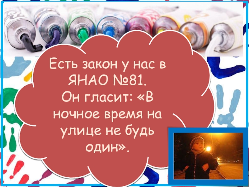 Слайд 6Есть закон у нас в ЯНАО №81. Он гласит: «В ночное время