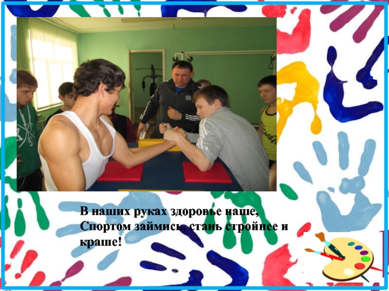 В наших руках здоровье наше,Спортом займись, стань стройнее и краше!