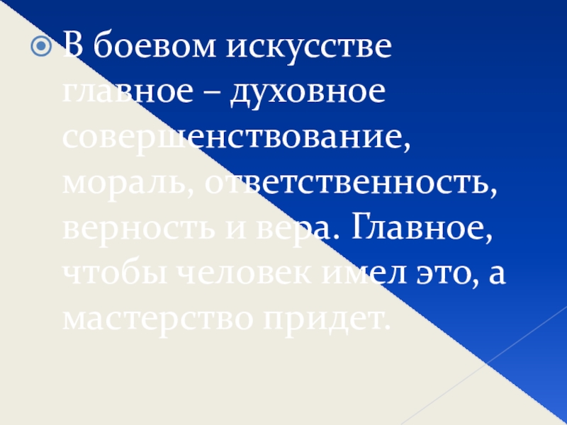 Очень важно понимать в боевых искусствах не только социологическую, духовную