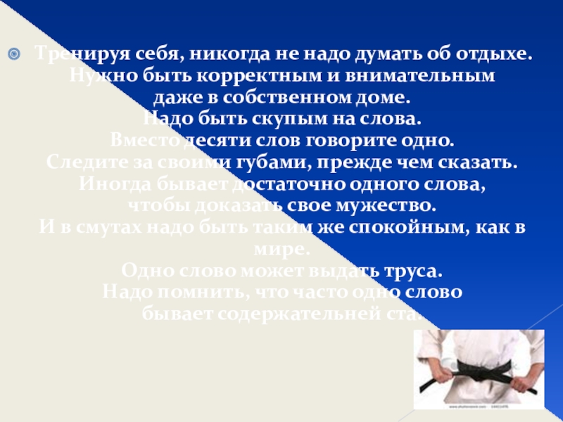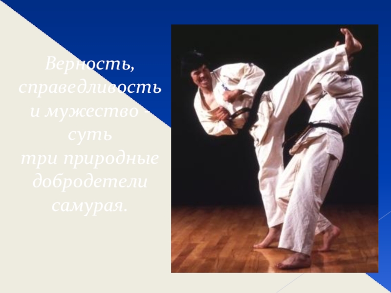 Слайд 18Верность, справедливость и мужество - суть